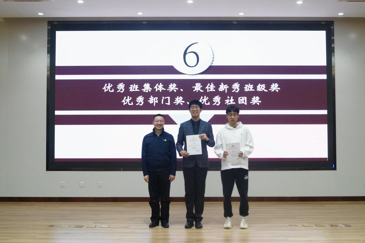 众擎易举,独力难成。2021、2022年,学院多个班集体、学生组织筹划举办多彩学生活动,出色完成各项任务,代表学院参加校级、市级、国家级竞赛,斩获荣誉,为院争光。党委学生工作部副部长徐敬尧、分团委书记白敏煊为获得集体奖项的组织颁发荣誉证书。2019级金融学2班代表王中玉上台发言,展示了班级注重理想信念教育,用好红色资源,组织的多种有意思且有意义的主题活动,重点介绍了“晨兴”学习互助小组,让班级学风建设的道路上做到“一个也不能少”。