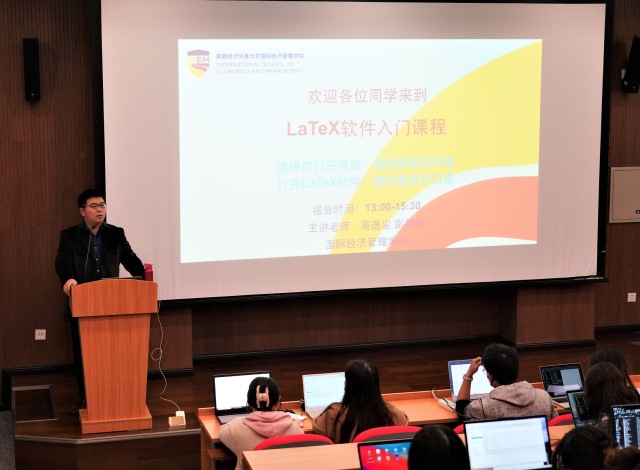 为培养新一代科研复合型人才,学院于2021年11月4日,在博远楼第3报告厅成功举办了科研论文编辑软件LaTeX的培训课程。该课程共73人参加,同时包括了我院本科生、硕士生、博士生、经济学院和金融学院本科及硕士生、全校博士生等。课程由高逸尘副教授主讲,学院院长助理李委明副教授主持。