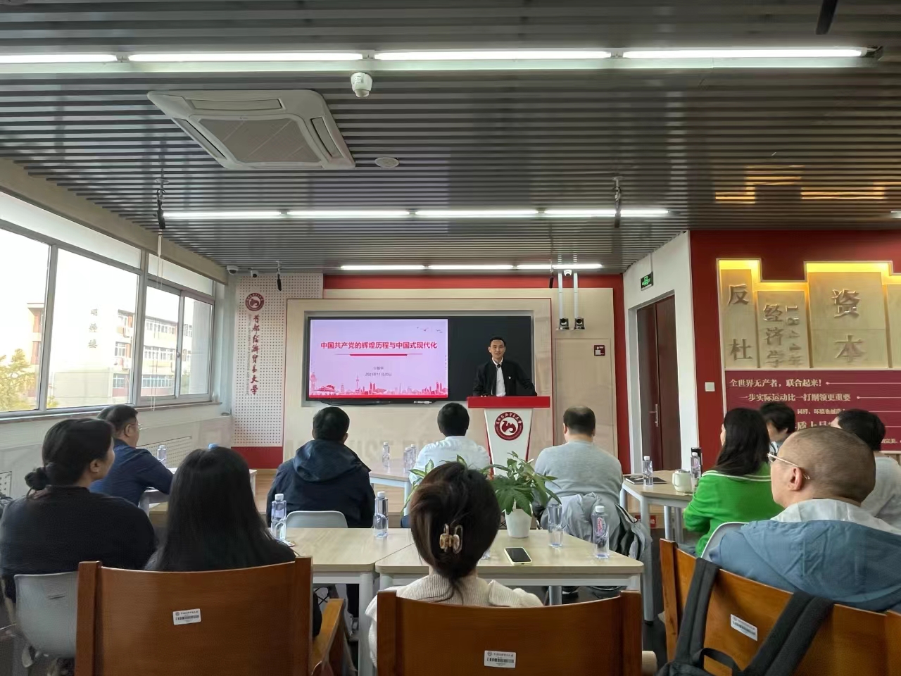 2023年11月20日,91porna 教师党支部邀请北京师范大学马克思主义学院党委书记亓振华同志来到91porna ,以“中国共产党的辉煌历史与中国式现代化”为题做专题讲座。学院党总支理论学习中心组、学院教师党员和入党积极分子以及学生党支部书记参加学习。