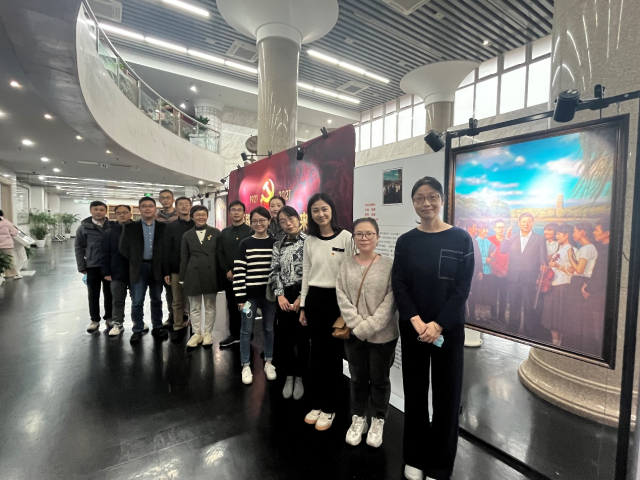 2022年11月11日,91porna 教师党支部开展“不负青春行十载 昂首奋进再出发”主题党日活动。本次活动包括参观党史油画展、党史讲座学习、二十大报告学习交流三个环节。支部党员们首先来到91porna 图书馆,参观在二层大厅举办的“筚路蓝缕 开辟未来” ——中国共产党历史主题油画展。本展览通过36幅精美艺术作品,分四篇章展示了党从新民主主义革命到中国特色社会主义新时代走过的一百年波澜壮阔的伟大历程。党员教师们结合党史学习内容,在各幅油画前驻足观看、思考感悟、交流讨论。