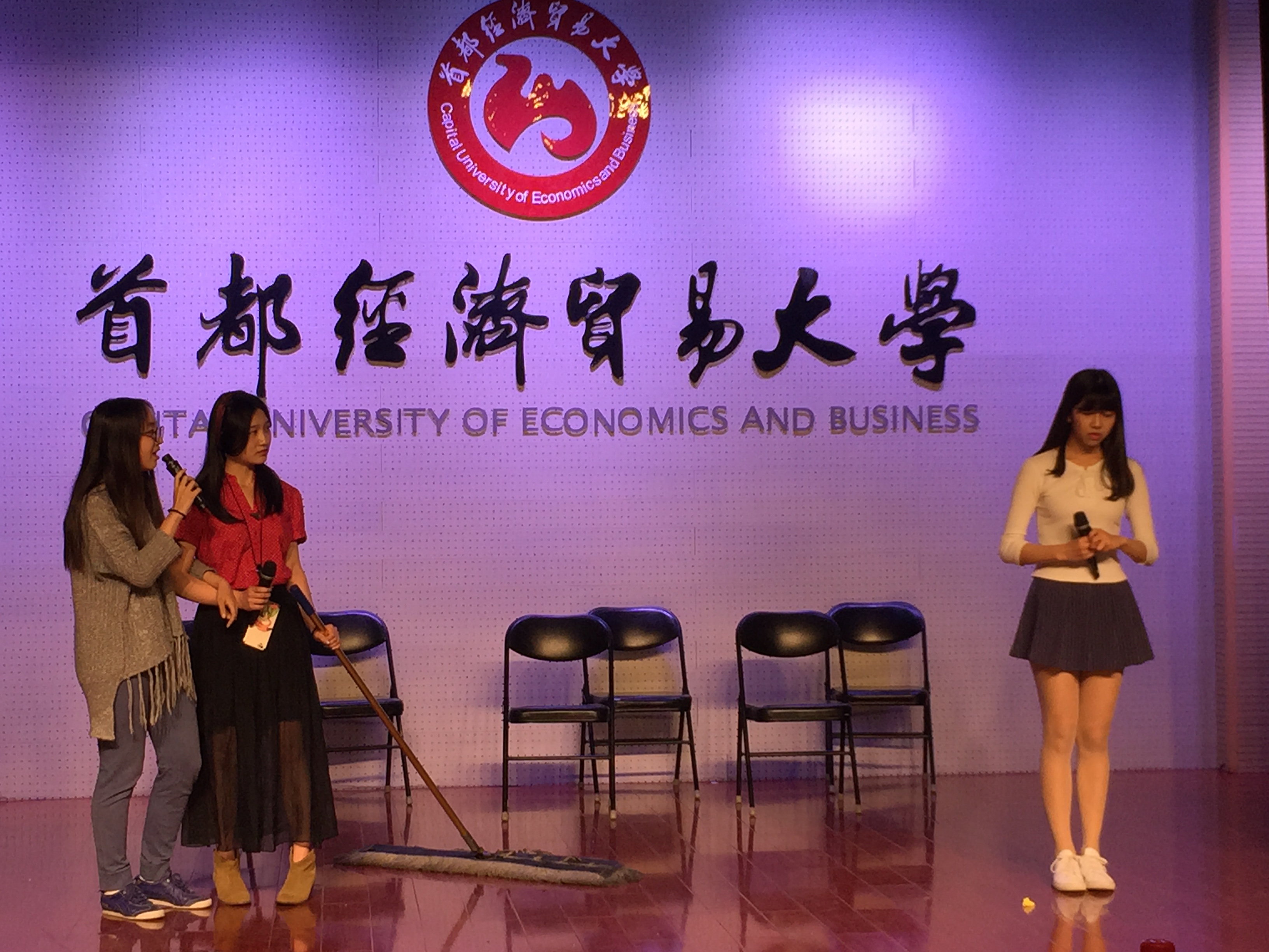 本次比赛我院刘畅、韩雨晴、陈晨、杨千慧、王紫荆、沈博仑、张一爽等七位同学参加了演出。他们精彩用心的表演、配合跌宕起伏的情节,把剧中所要体现的深刻含义淋漓尽致的表达了出来,给评委和观众留下了深刻印象。