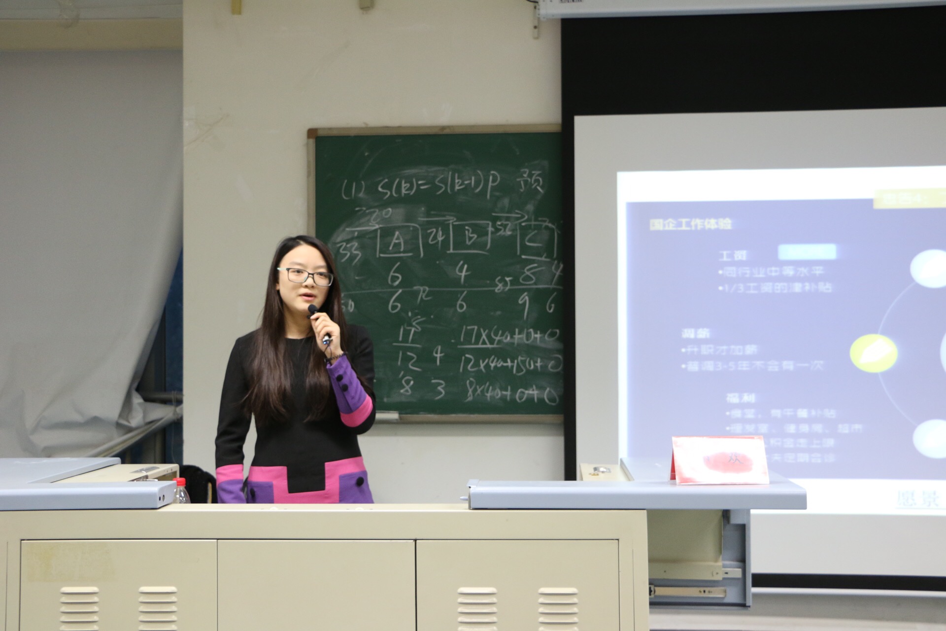 举办了实习及考研主题讲座,主讲人为中化公司人力资源总监祁欢。本次讲座旨在帮助同学解除对实习考研的疑惑,并为犹豫不前的同学理清未来方向。