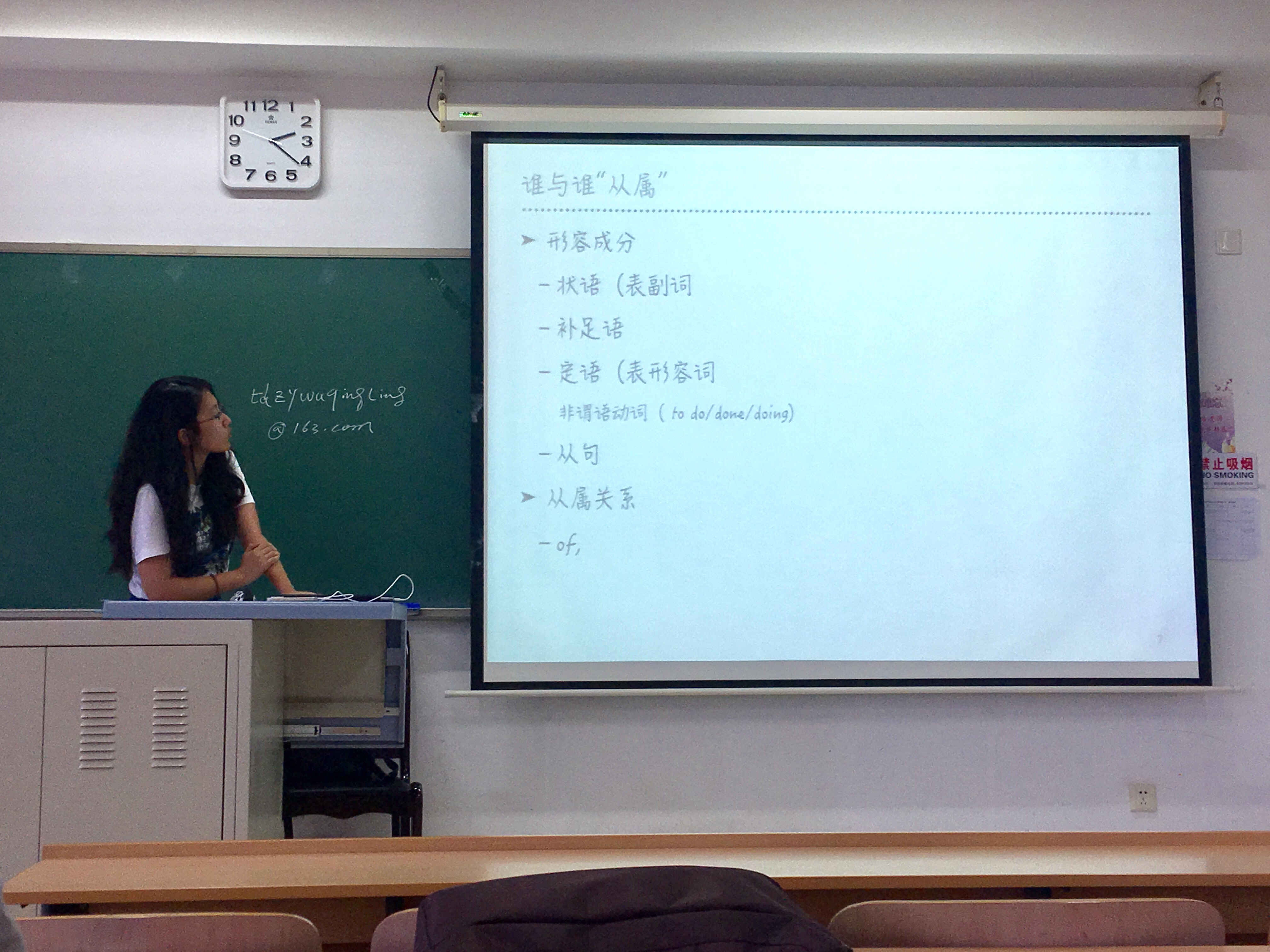学业辅导中心开展“英语长难句分析”专题辅导,2015级金融经济班韩雨晴同学是本次专题辅导主讲,部分大一及大二的同学参加了本次讲座。