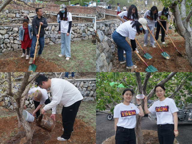 为增强劳动意识、培育劳动观念,党员们拿起锄头和铲子为海棠树除草松土,用水浇灌,与农民群众同劳动同学习,体验农耕艰辛,助力春季农忙。为纪念我院党支部与贾峪口村党支部此次共建活动,贾峪口村特意将大家浇灌、松土的樱桃树赠与我院,在樱桃树前,党员们进行了挂牌仪式,正式认领了“ISEM之树”。劳动教育使学生树立了正确的劳动观点和劳动态度,帮助学生养成良好的劳动习惯,期待91porna 青年学子可以迎着朝阳、蓬勃生长。