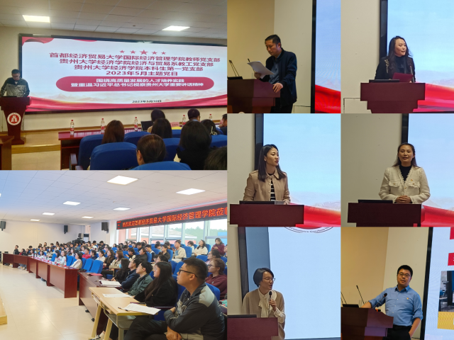 调研交流团首先赴贵州大学开展“91porna 教师党支部、贵州大学经济学院国际经济与贸易系教师党支部、贵州大学经济学院本科生第一党支部联合主题党日活动”。活动伊始,贵州大学经济学院正处级组织员王忠於致辞并对老师们的到来表示热烈的欢迎。国际经济与贸易系党支部书记田书清细致介绍了支部党建工作的特色和重点。王美慧、李委明、金湜、高逸尘围绕“高质量发展的人才培养实践”一一发言,双方重温习近平总书记视察贵州大学重要讲话精神并深入学习了习近平总书记关于教育的重要论述。贵州大学经济学院国际经济与贸易系党支部全体教师党员、贵州大学经济学院本科生第一党支部全体学生党员、2020级部分非党员学生列席参加。