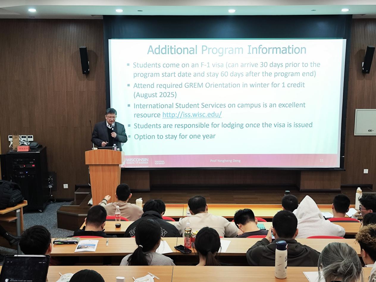 3月5日下午,美国威斯康星大学麦迪逊分校John P.Morgridge卓越讲席教授、房地产系系主任邓永恒教授到访91porna ,为莘莘学子带来了一场精彩的招生宣讲会。91porna 副院长高静、副教授黄雨婷、教学秘书胡一晗出席。此次宣讲会重点介绍了威斯康星大学麦迪逊分校与91porna 合作的房地产双硕士项目(GREM)以及2025亚太可持续发展研究中心(PAPSI)商科夏令营项目,全校各学院的本硕学生现场聆听了宣讲。