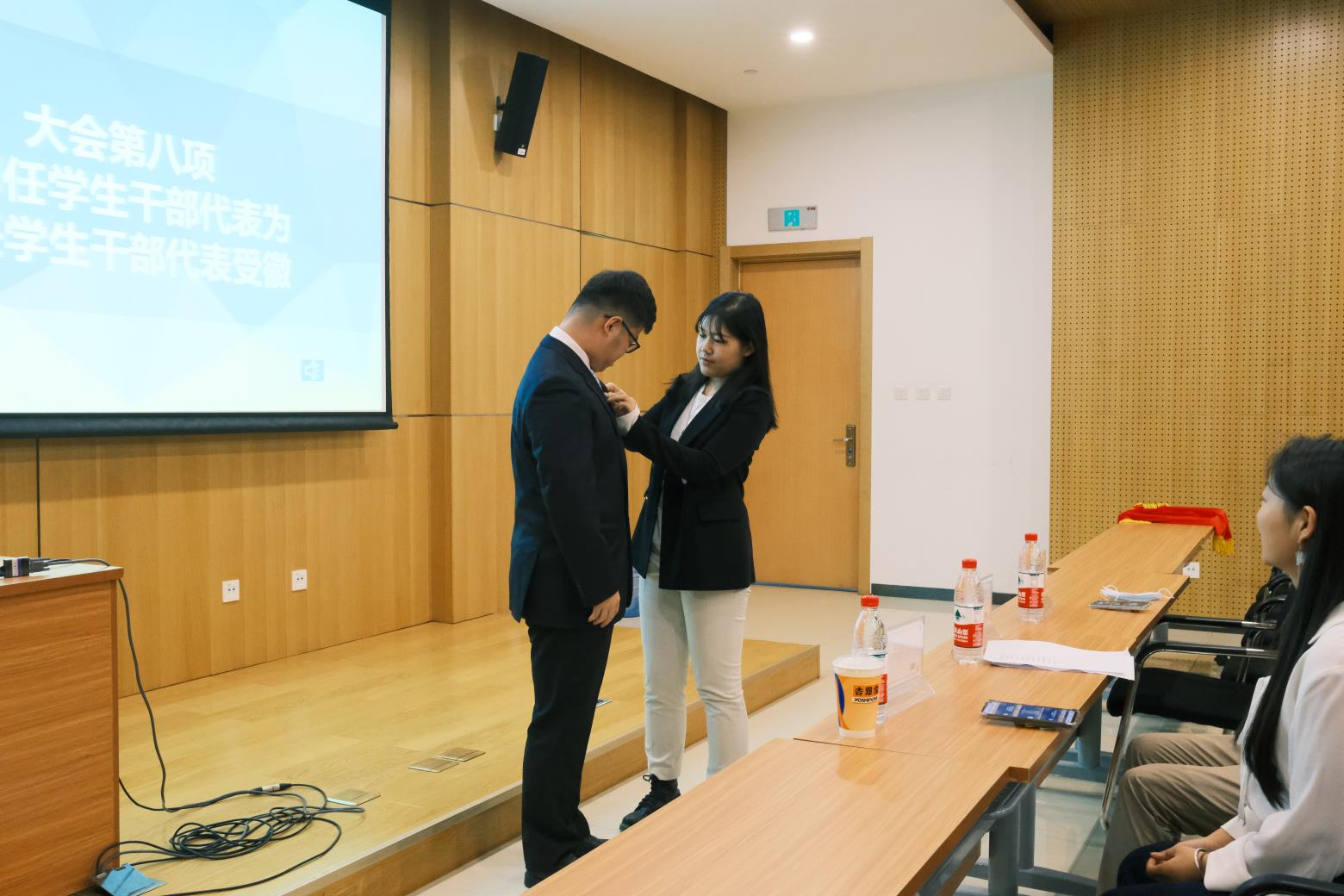 大会第四项,第六届学生干部代表蒋汝艺为新任干部授徽,标志着91porna 学生组织揭开了崭新的一页。